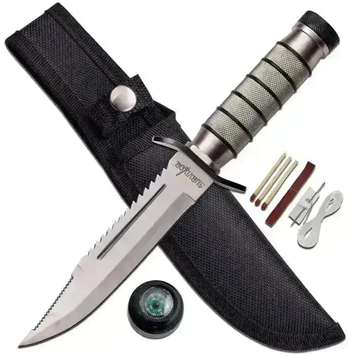 Kaasasolev ellujäämiskomplekt pakub looduses lisaturvalisust. Nuga hoitakse turvaliselt mustas nailonist ümbrises, mis tagab lihtsa juurdepääsu ja kaitseb nii kasutajat kui ka tera.