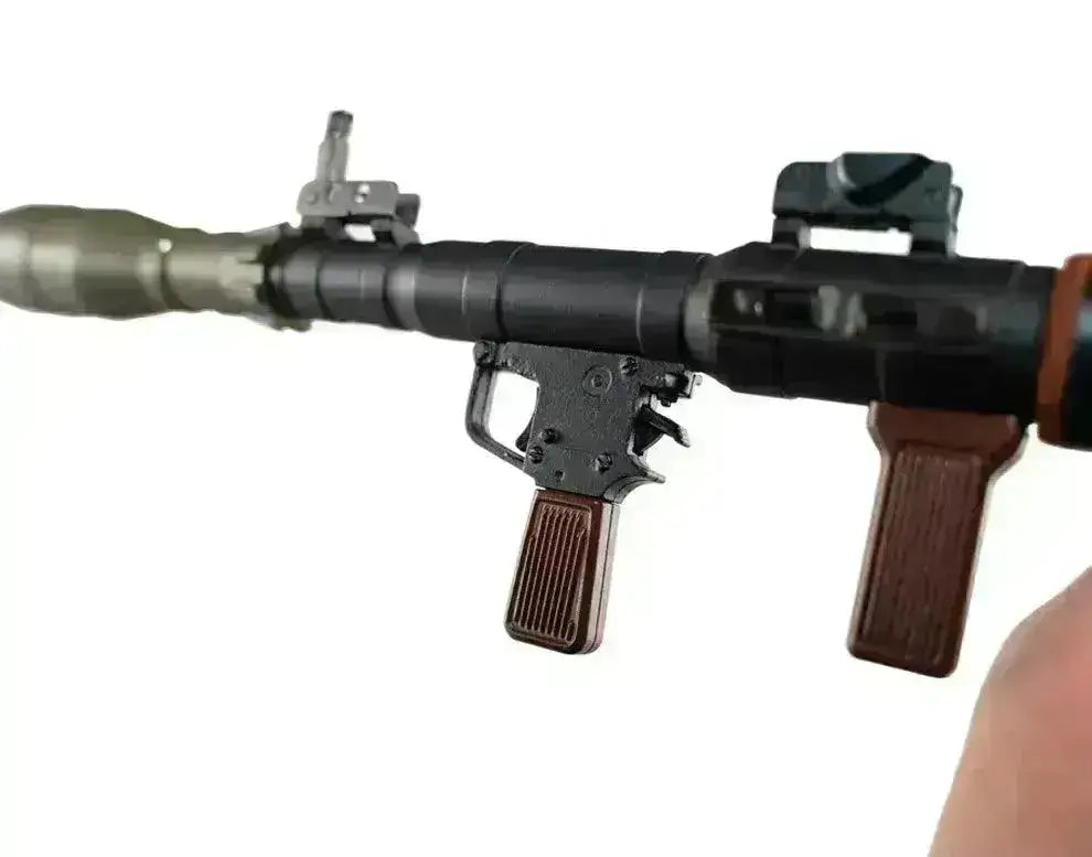See lahe RPG on 1:4 mõõtkavas ning valmistatud metallist ja ehtsast puidust. Lõhkepea (raketi) saab eemaldada ja RPG on komplektis. Stiilne ja täpne minikoopia, mis on stiilseks kaunistuseks tele- või poistetuppa!