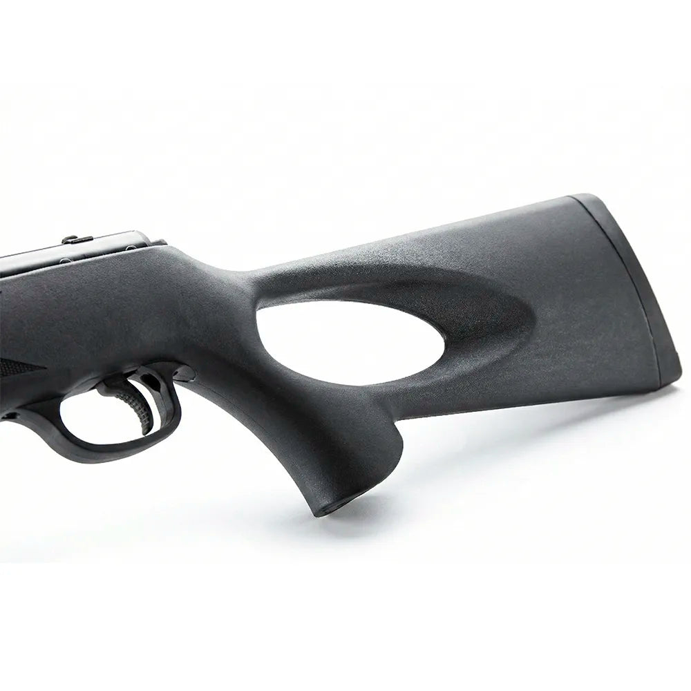 Snowpeak B11P er et solid fjærdrevet luftgevær med knekkløp, laget for deg som vil ha en stødig og forutsigbar plattform til blinkskyting og trening. Den ergonomiske tommelhullskolben gir godt anlegg og kontroll, og det riflede stålløpet er laget for jevn presisjon over tid.