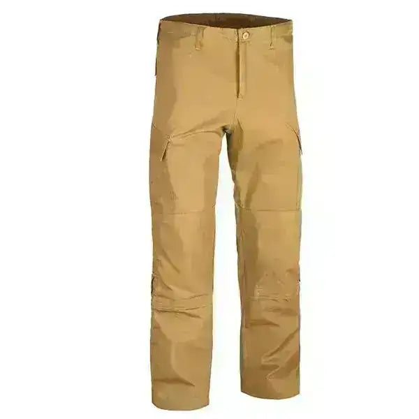 Vastupidavad ja hingavad taktikalised püksid, mille taskutes on palju ruumi. Pükstel on rip-stop, mis muudab need eriti vastupidavaks. Pükstel on palju taskuid, sh 4 ees, 2 pahkluu juures ja 2 taga. Koiotipruun kamuflaaž.