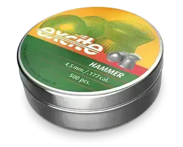 Perfect plinker ammunition that has a rounded (domed) tip that cuts nicely through the blip and has a straight bullet trajectory. Recommended maximum distance is 30m.