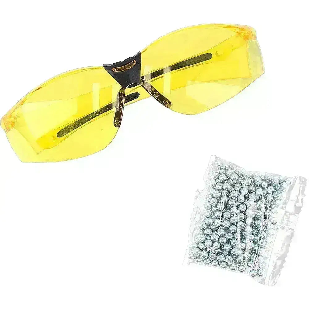 Included in the package are 250BB bullets and shooting glasses.