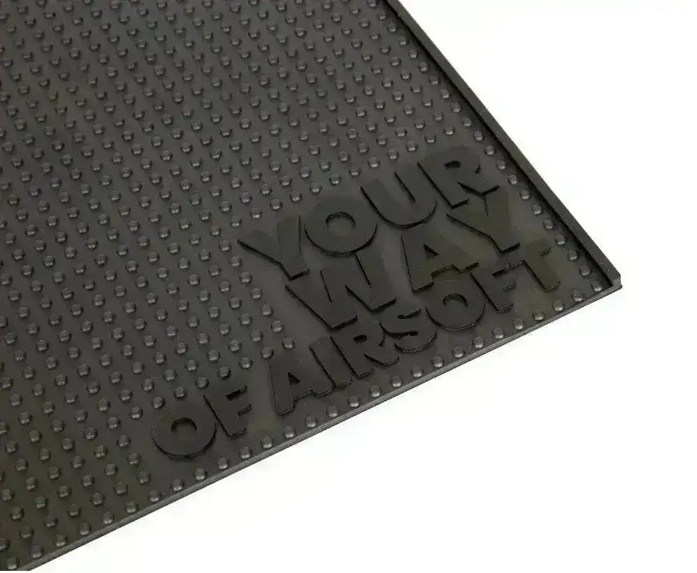 Large and practical anti-slip rubber mat to use as a base when maintaining your softgun. The mat has raised edges so that no parts or screws roll away. The mat is perfect for airsoft maintenance, but is also suitable for all work involving small parts. This can potentially save you a lot of headaches and searching for small parts that have rolled away!