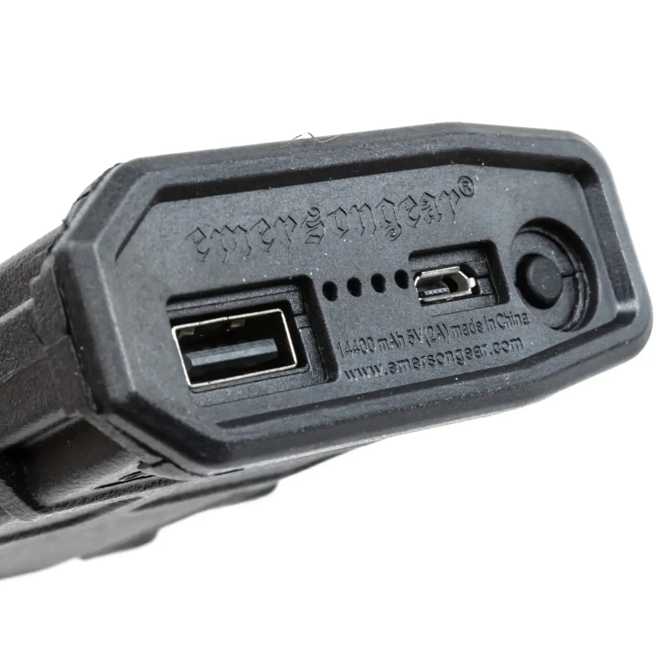 Powerbank from Emerson Gear (comes without battery) that fits 3pcs 18650 batteries and can charge via mini-usb and regular USB-A (cables not included)