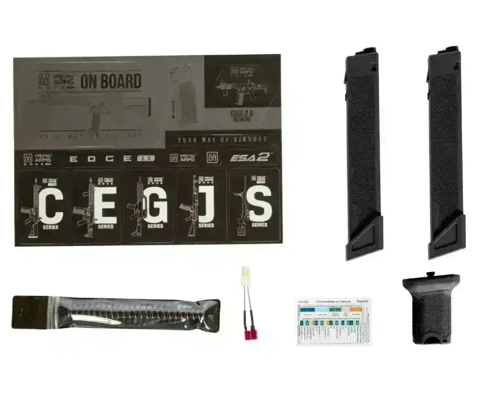 The SA X-02 is a softgun replica in the X series by Specna Arms. This series consists of SMGER that comes upgraded with street aster, sunbow extraction, flat -hup rubber and precision run - right out of the box, this is a top class rifle that really performs well on the track! The X02 is a stylish PDW (Personal Defense Weapon) that comes with detachable angled front grip, adjustable flask and M-LOK mounting as well as a 21mm rail to mount tactical equipment.