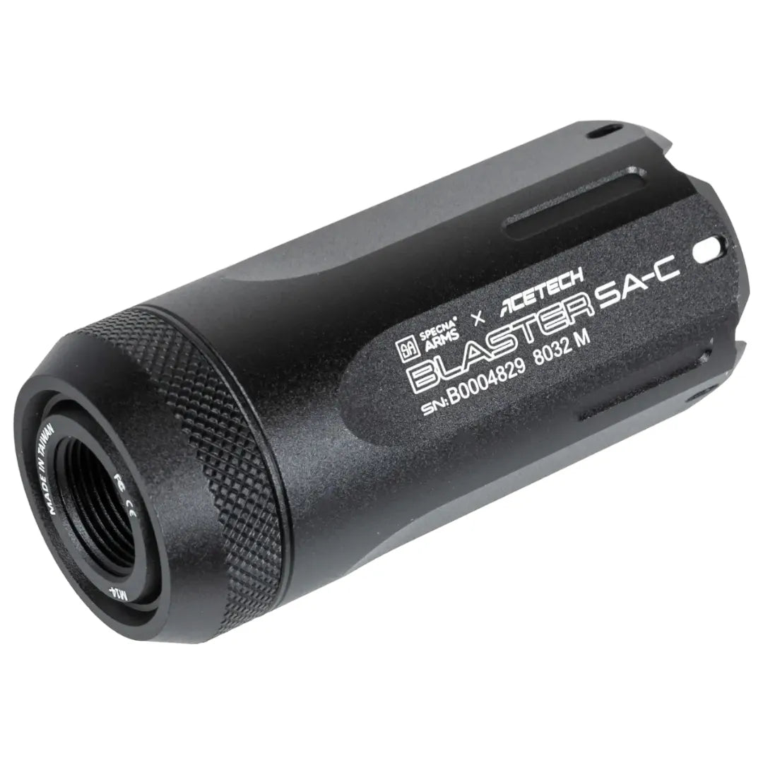 Blaster SA-C tracer suppressor is the result of a collaboration between Specna Arms and AceTech, an experienced manufacturer known for high-quality accessories for airsoft guns.