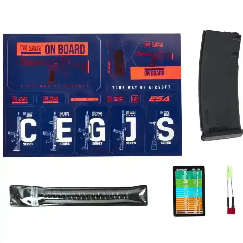 The Specna Arms SA-F08 FLEX™ HAL ETU™ is a reliable and versatile airsoft carbine in the FLEX™ series, equipped with HAL™ chip and advanced electronics. The HAL™ system offers the user programmable features such as active brake, binary trigger, adjustable sensitivity, and multiple firing modes (full-auto, semi, 3-round and 5-round burst). This makes it ideal for various game scenarios.