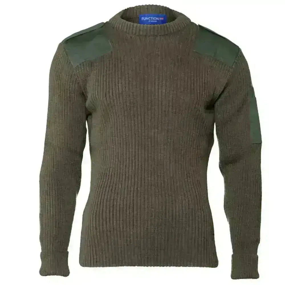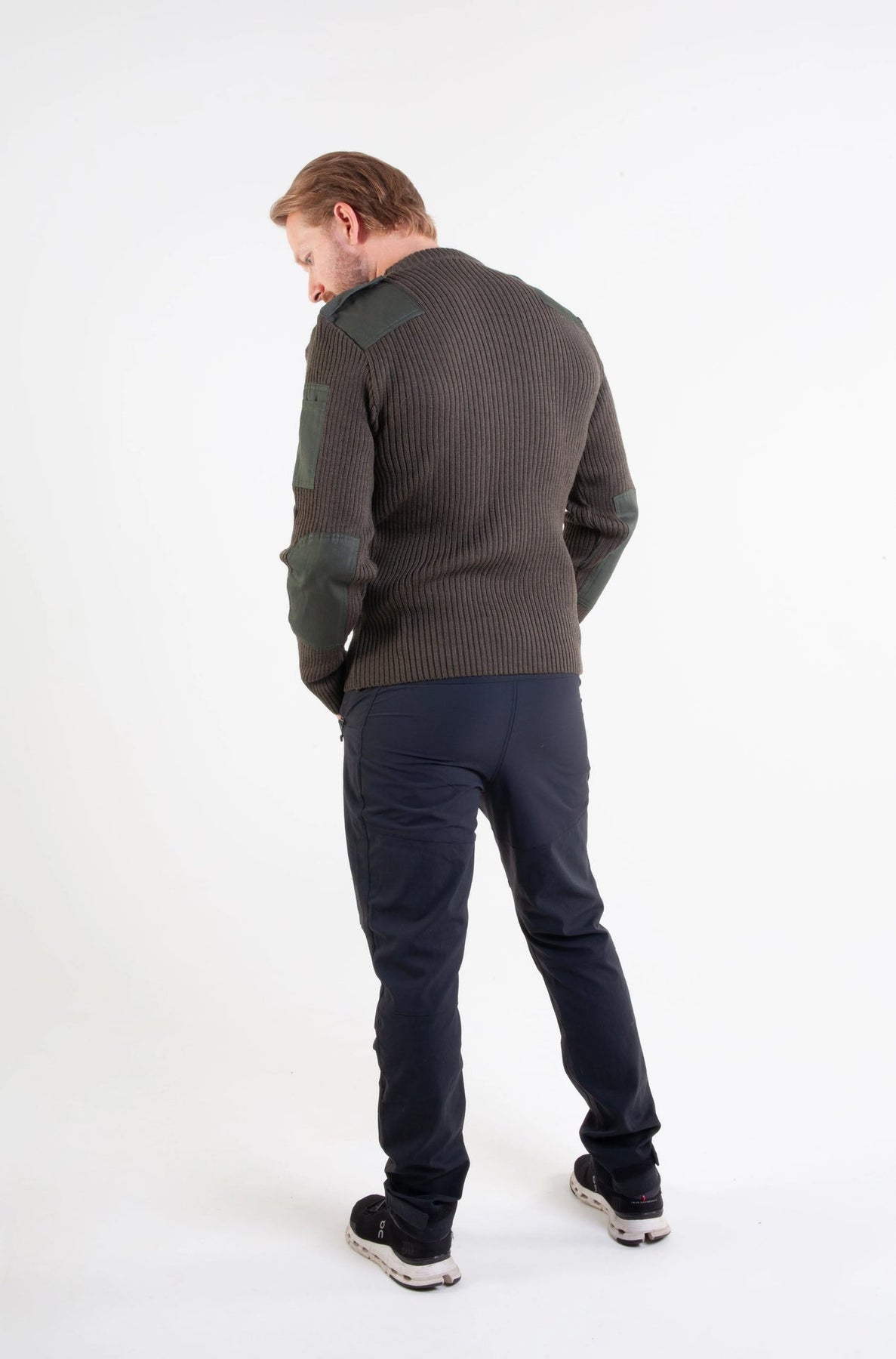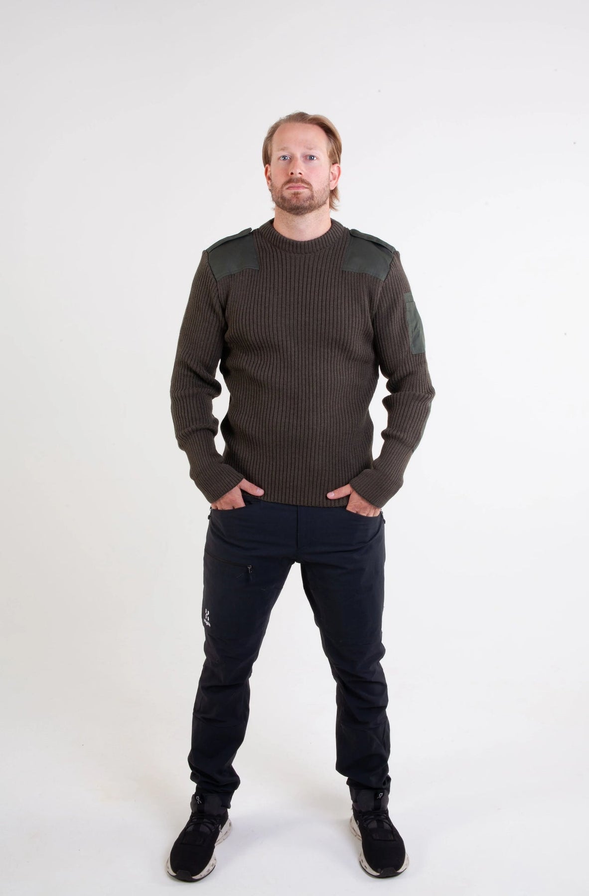 Bråten's green NATO sweater is inspired by the Norwegian military's uniform garments. Knitted in 80% wool and 20% polyester, the sweater offers warmth, comfort, and durability. Shoulders and elbows are reinforced to withstand heavy use – ideal for outdoor activities, hunting, and work.