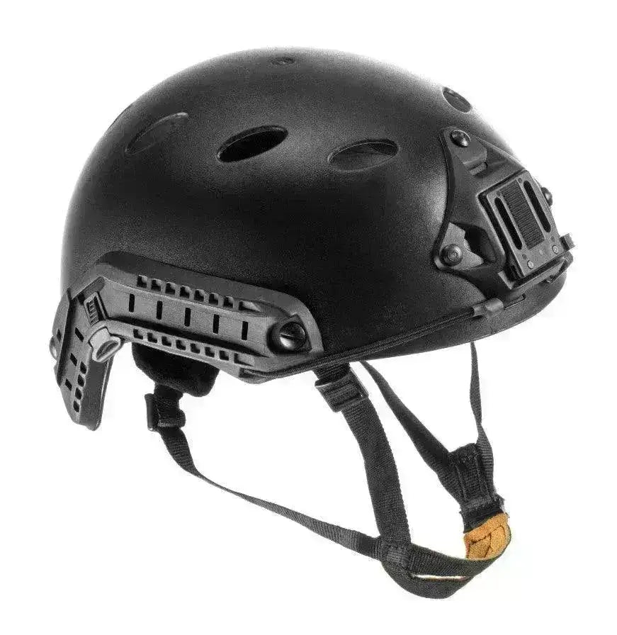 Simple replica of the famous PJ FAST helmet. The helmet is perfect for airsoft games and has an adjustable chin strap, NVG assembly and rails on the sides.
