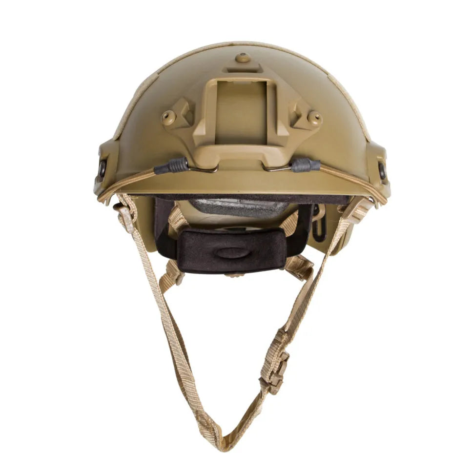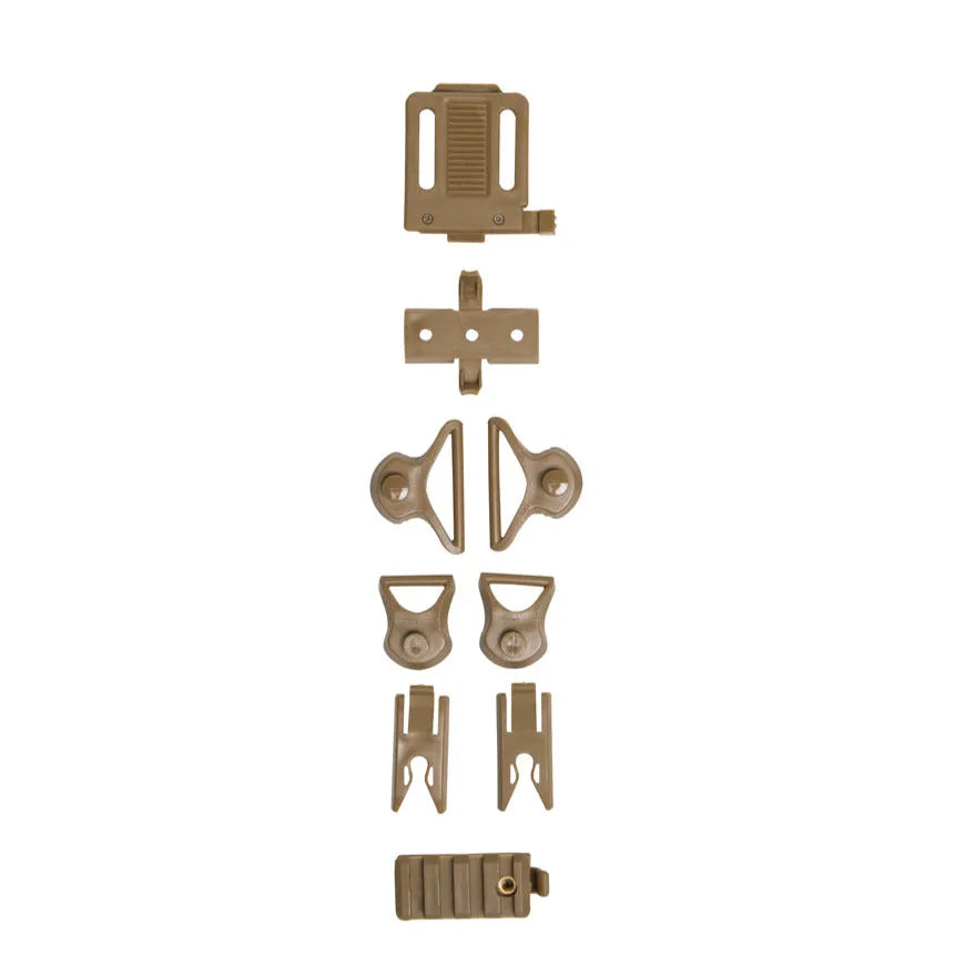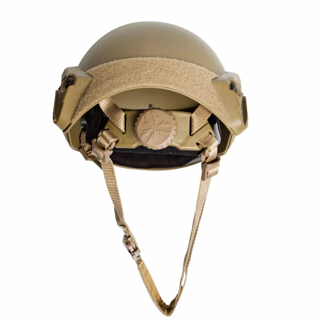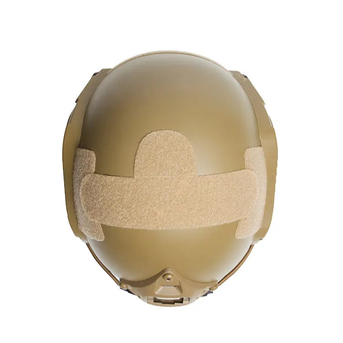 There are a multitude of options for attaching accessories to the helmet. With rails on both sides, you can mount a lantern, laser, camera or glasses here. It comes with various brackets to attach different equipment. At the front of the helmet there is also an attachment for NVG, night vision goggles. This is stabilized with two elastics, to make it more comfortable to walk with.