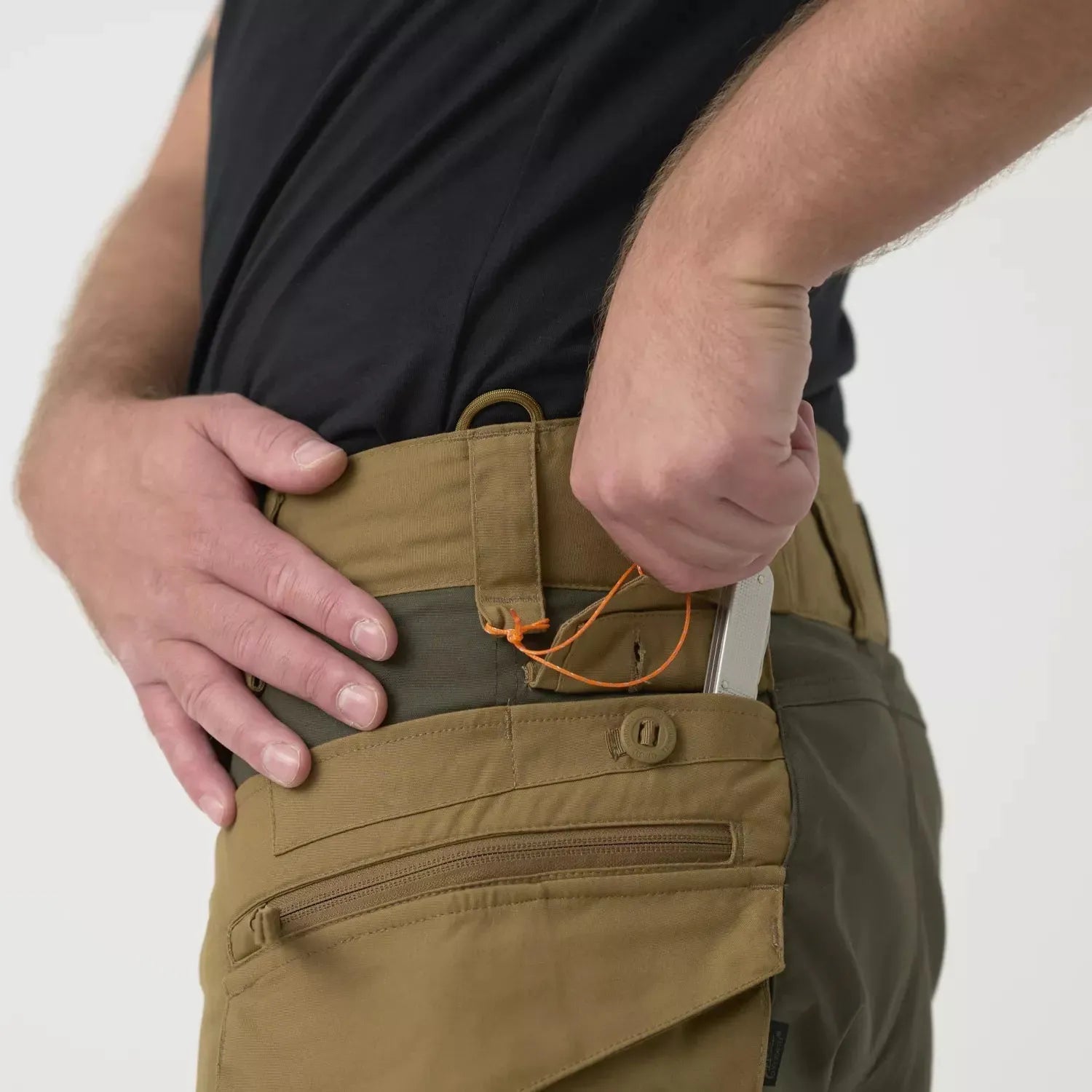 Note: Color options are black and taiga green. The other pictures show a different color and are just to illustrate the pants' features. The equipment in the picture is not included.