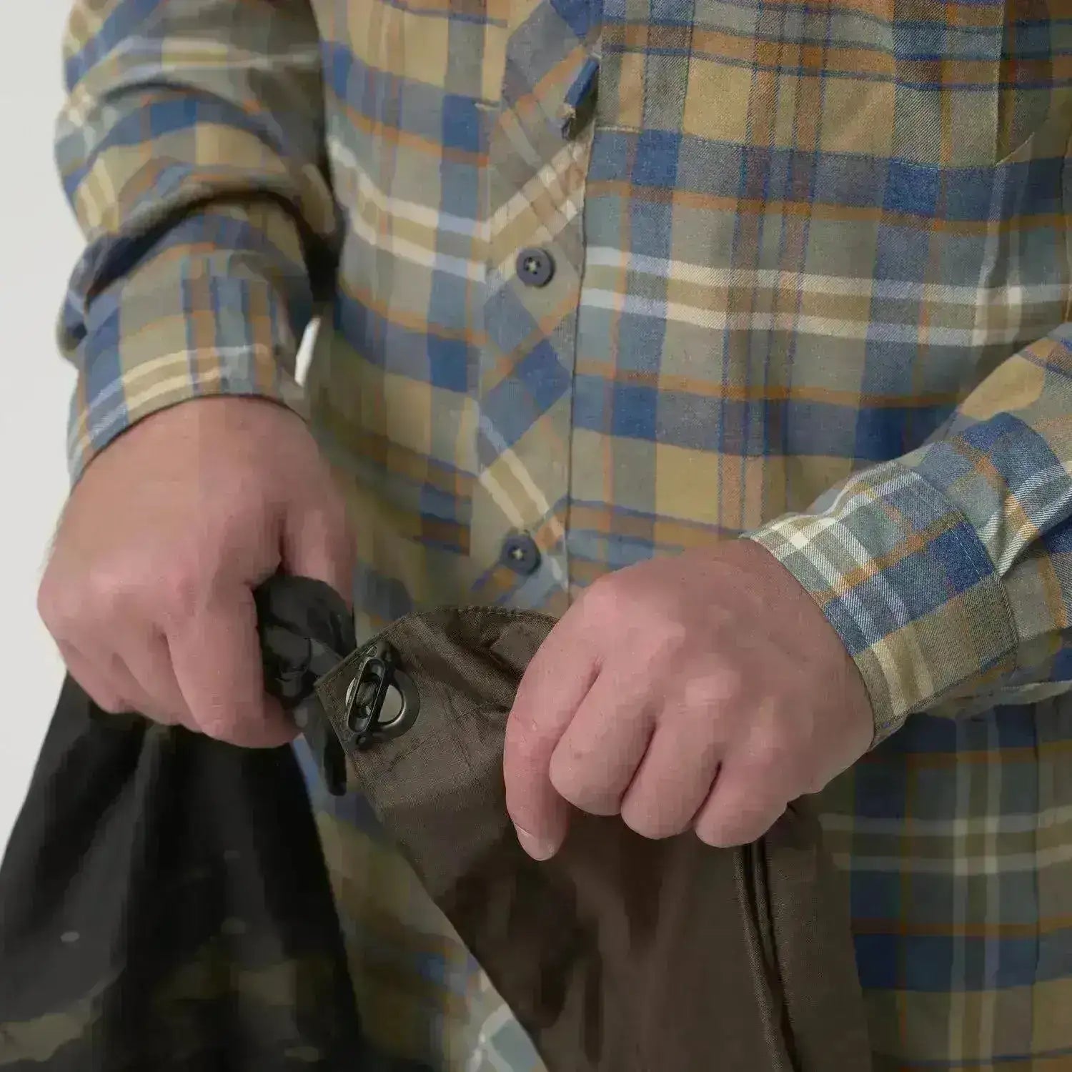 The Helikon-Tex US Model Poncho is a robust and lightweight rain poncho made of rip-stop polyester, designed with a focus on functionality for outdoor and tactical situations. The material is waterproof and quick-drying, with bonded seams and reflective snap buttons and metal eyelets for extra durability.