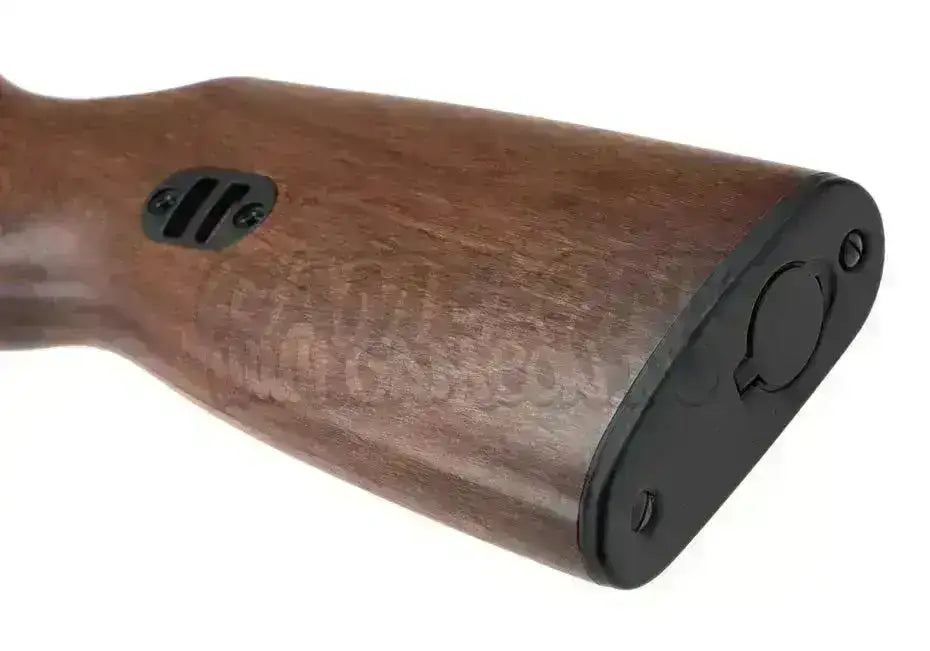 This historic Russian SMG rifle saw the light of day in 1940 and was nicknamed "papasha" - which means father. The SMG rifle was known for having an incredibly high rate of fire. This replica has a steel receiver and the stock itself is made of nice faux wood. For extra fun and realism, this airsoft rifle has electric blowback, which causes the bolt to go back with each shot and you feel a little recoil.
