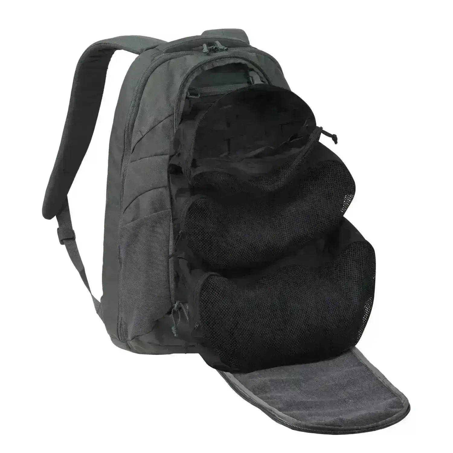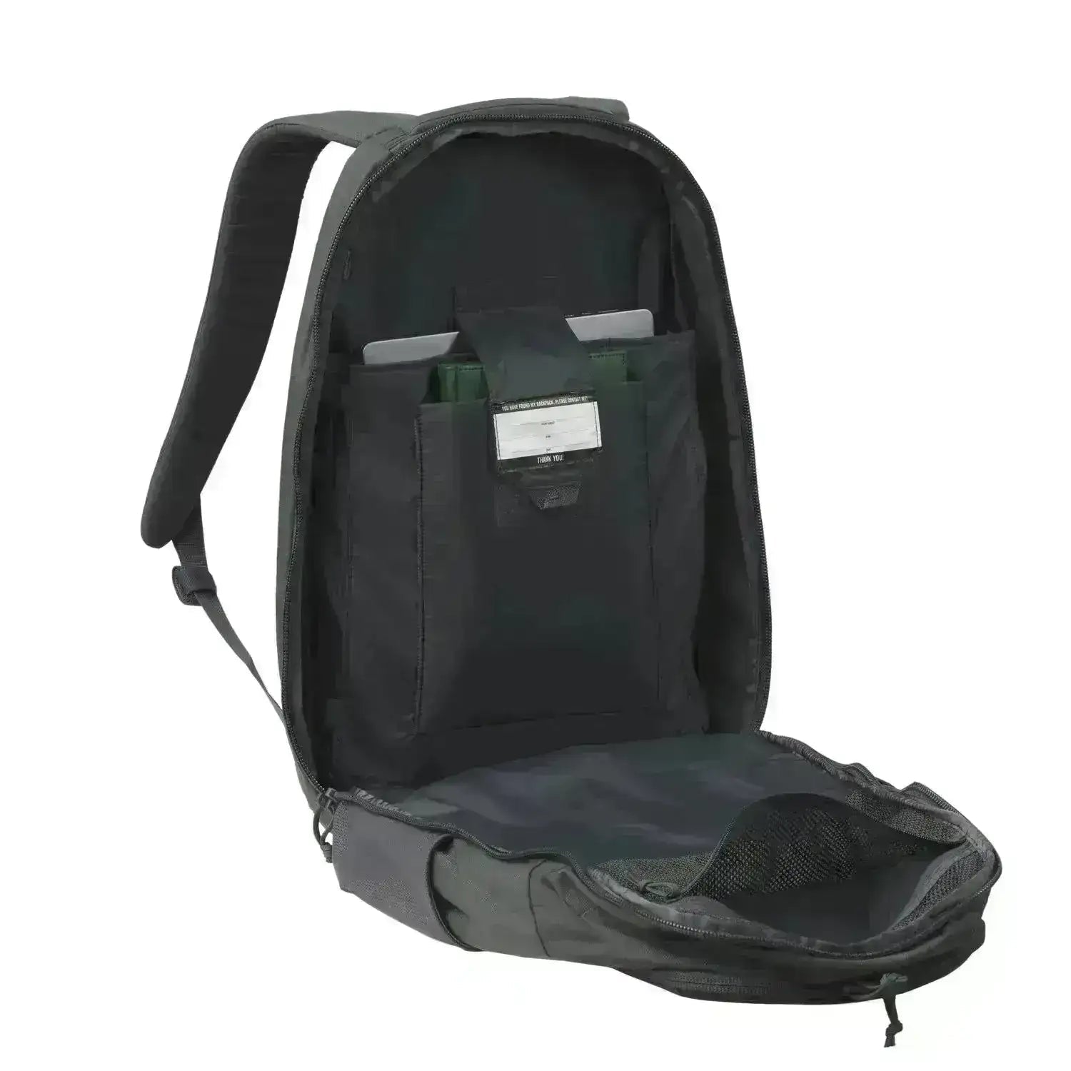 There is a secure pocket (inside the compartment closest to the back) for a laptop up to 15.6 inches and space for flat items, documents, books, etc. So, the Traveler can also be used as a laptop backpack. The main compartment has a large Velcro panel sewn on one side. It is compatible with the VIS (Versatile Insert System) to organize. There is also a zippered mesh pocket, for example, for cables and chargers, and a handy organizer for small items, pens, and the like.
