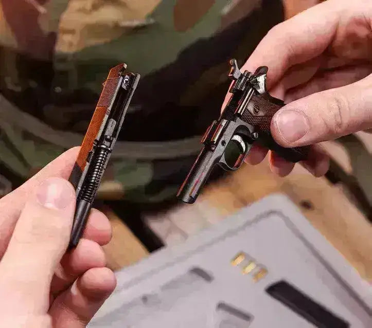 But wait, there's more! The Mini 1911 isn't just a static model; it also has working parts like a slide, trigger, and interchangeable magazines. So now you can feel like a real gun expert as you sit there in your armchair playing with your little replica (don't try to shoot it, though - it's just a model, after all).