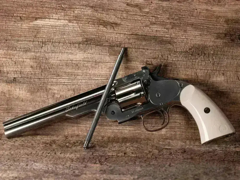 Solid rifled long steel barrel for Schofield 4.5mm revolvers - Replaces the half-barrel that is in the original.