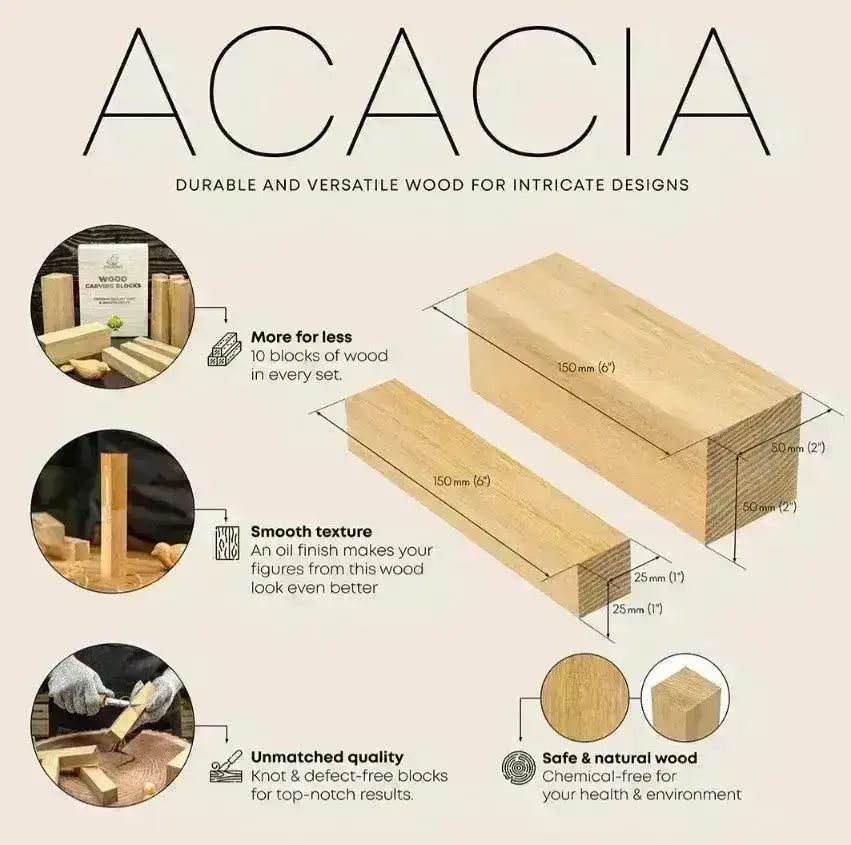 10pcs Item - Wooden Blocks for Wood Carving Acacia