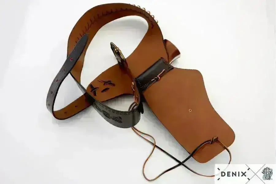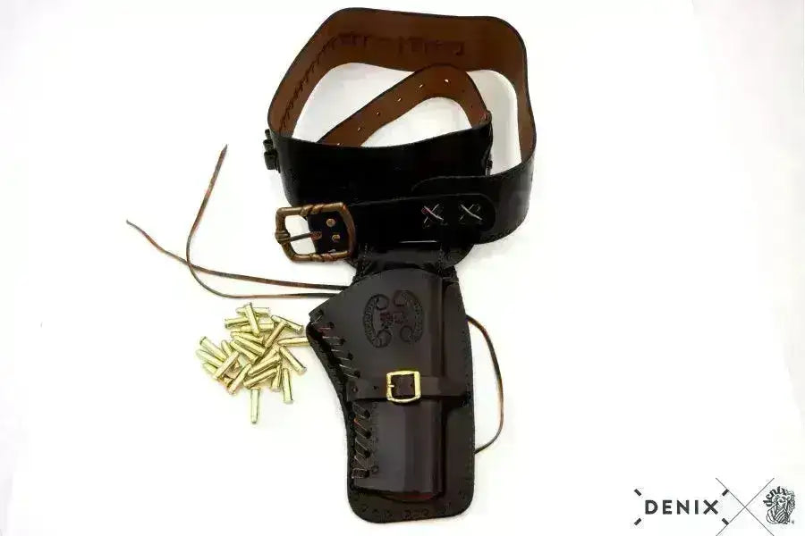 Denix Western belt with holster for right-handed people. Made of leather and is a top quality cowboy belt with holster for the right side.