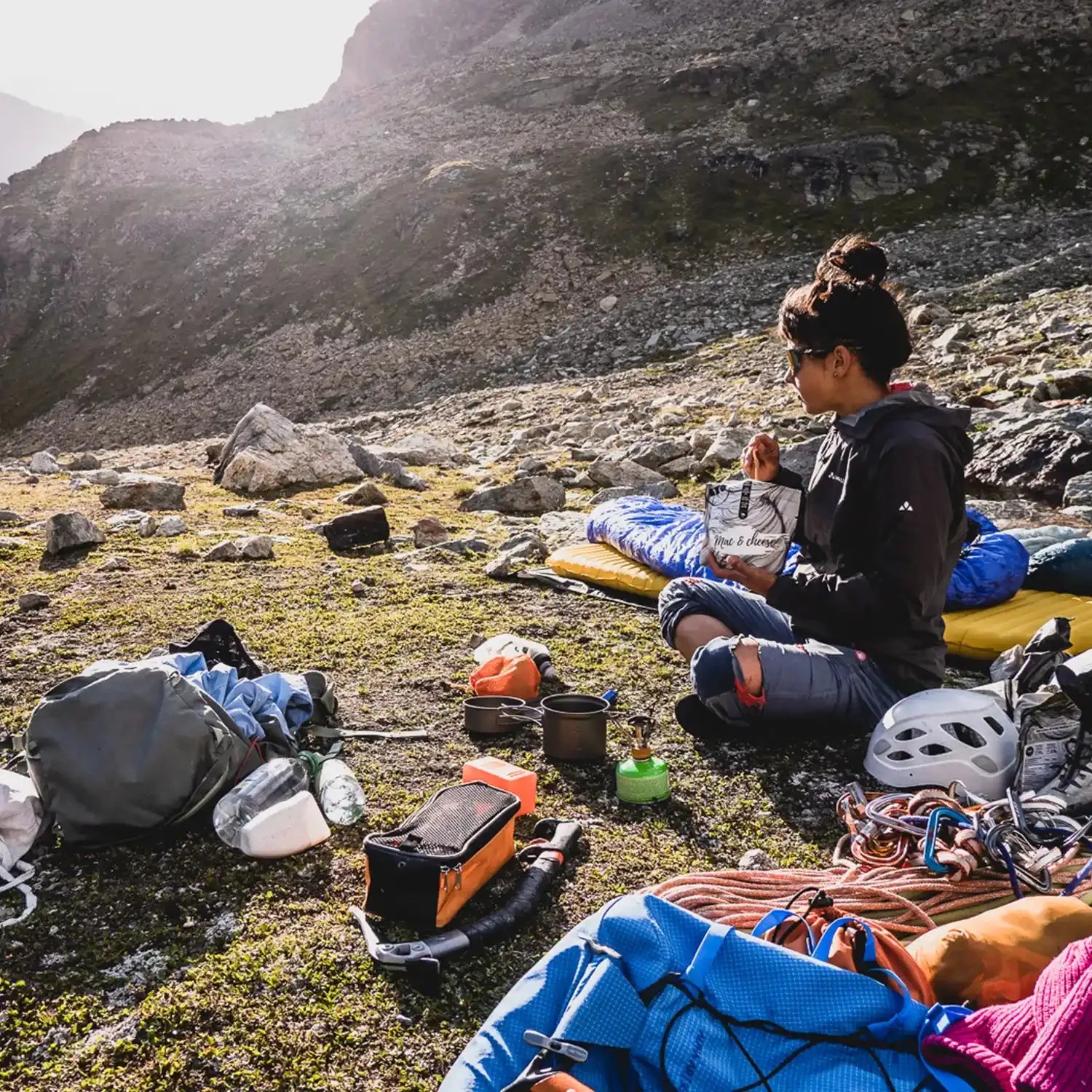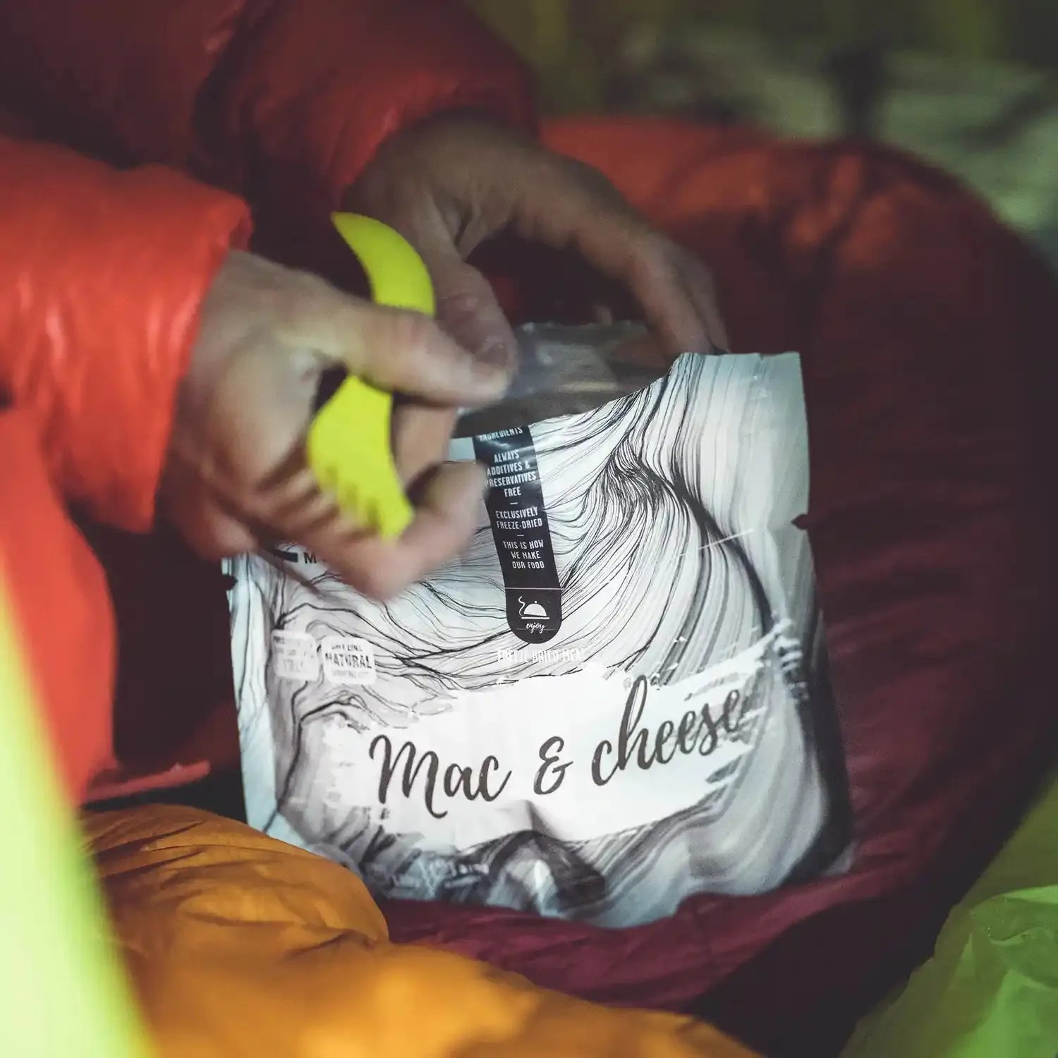 Pour boiling water into the bag, stir well and let stand for 8–10 minutes.Enjoy a classic Mac & Cheese – warm, hearty, and ready for the trip.