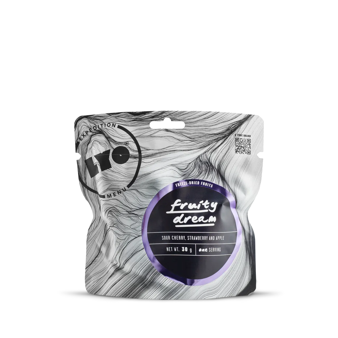 Fruity Dream er en fargerik og smakfull blanding av frysetørket eple, jordbær og surkirsebær. Uten tilsatt sukker og full av naturlig fruktsmak. Perfekt som tur-snack, i frokostblanding, dessert eller smoothie. Raskt å spise – lett å elske. En fruktig boost uansett hvor du er!
