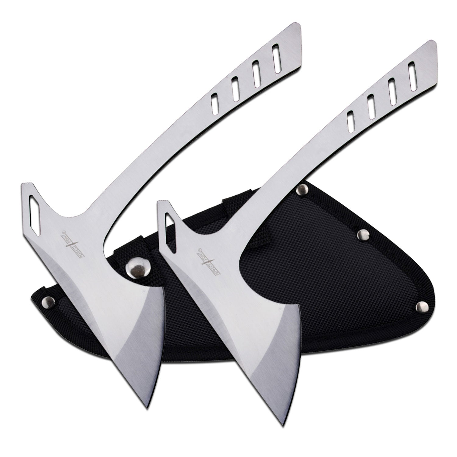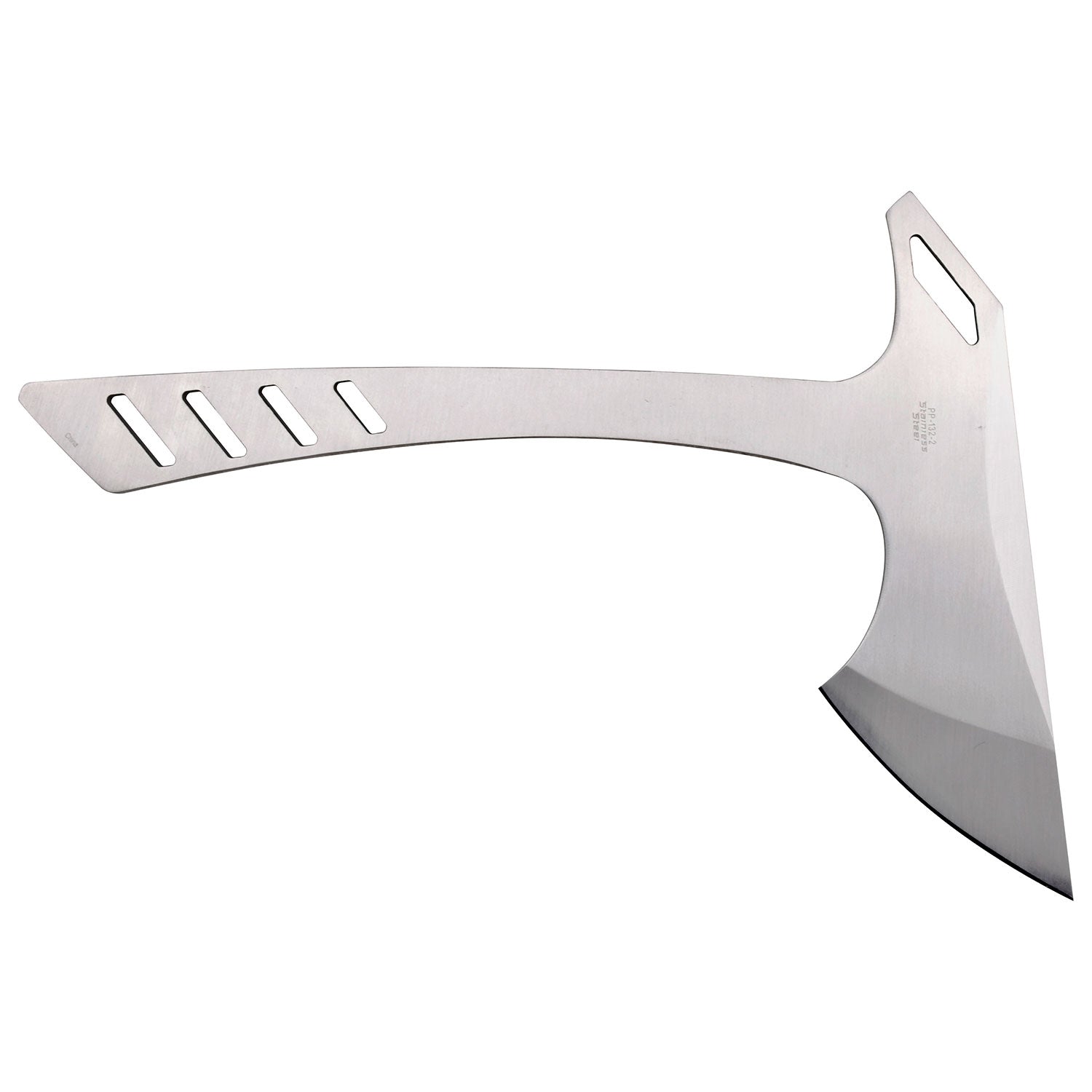 Øksene er laget i ett stykke rustfritt stål med såkalt full tang-konstruksjon, som gir maksimal styrke og jevn vektfordeling. Den satengbørstede overflaten gir et rent og klassisk uttrykk, samtidig som den beskytter stålet mot korrosjon. Laserutskjæringene i skaftet reduserer vekt og forbedrer balansen, slik at kastene blir mer stabile og forutsigbare.