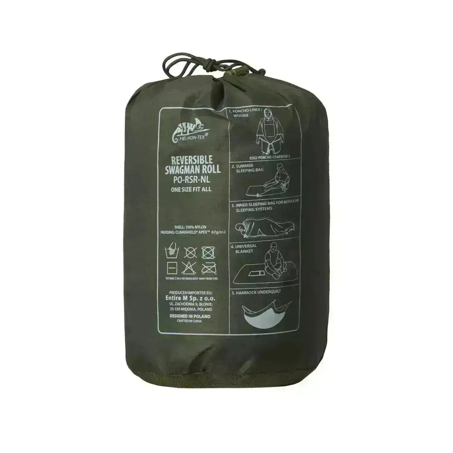 Tänu täiustatud Climashield Apex® isolatsioonile kaaluga 67g/m² on see kerge ja soe. Pööratava Swagman Roll®i magamiskotiks muutmiseks keerake servad kinni. Seda saab kombineerida ka meie Poncho US mudeliga. Valikuliselt saab vöökoha kinnitada pannaldega, et materjal istuks kehale lähemal nagu hädaabijope. Reversible Swagman Roll® sobib suurepäraselt telkimiseks, autosse või varustuse osana BOB (Bug Out Bag) põgenemiskotis.